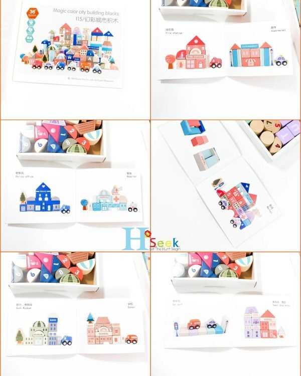 Classic City building blocks set: Lewo building blocks set comes with 115 pcs blocks of different shapes and colors, 1 manual, 1 storage bag and 1 storage box. Children can use shape blocks to build various shapes, such as windmills, rockets, robots, giraffes and so on.