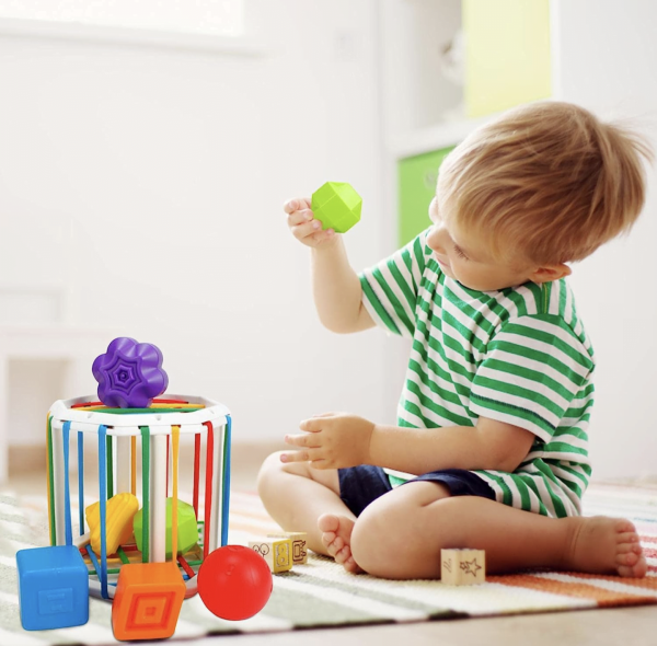 Creative Toys: Our sensory sorting bin is a beautifully constructed and creative toy with colorful bright-colored, easy-to-grip shapes. The baby tries to push the shapes to exercise the brain.