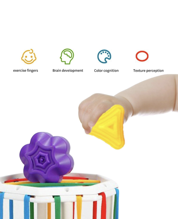 Multi-Sensory Shapes: Our colorful sorter bin has 6 blocks of different shapes, each with different textures and colorful colors on the that can exercise your baby’s color recognition ability