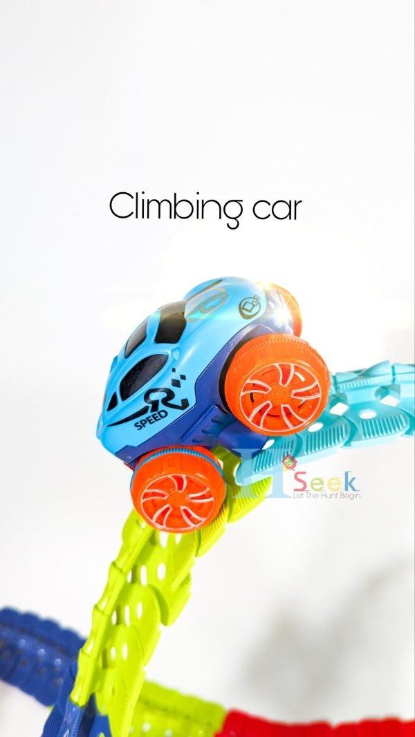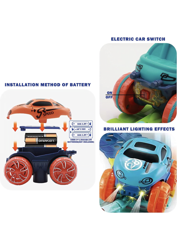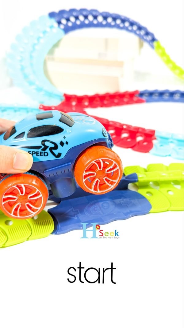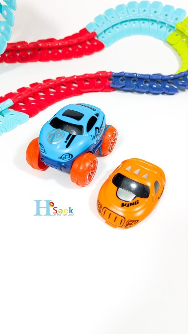 It is compatible with most tracks, including some dinosaur toy tracks, rainbow tracks, etc. It can also be independently assembled on any smooth surface to capture a child’s imagination. A racing track is a great educational toy that encourages children to develop motor skills, thinking skills, problem solving, teamwork, and more. This is an educational car track toy.