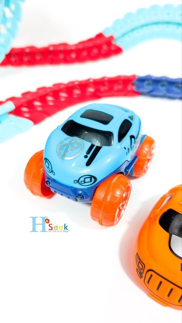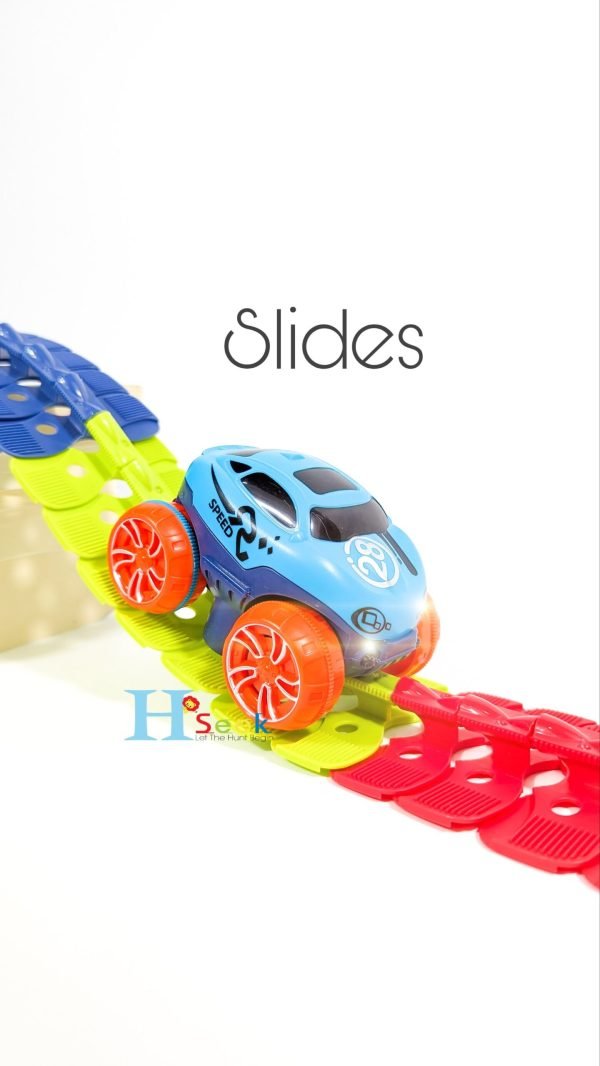 The Amazing Magic Racetrack That Can Flex ! You Can Change The Design Of Your Track Into Any Pattern, The Magic Is Serpentine Technology. Just Snap Any Track Pieces Together And In Seconds You’Ve Got A Customized Speedway! Each Magic Track With Race Car That Can Running High Speed!