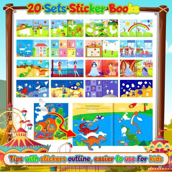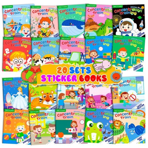 Sticker Books for Kids: 20 Sets Sticker Books includes 20 themes for kids 2-4[Cognitive Competence][Safety Education][Amusement Park][Opposites][Occupational Division][Color Recognition][Kindergarten Life][Princess Dress][Memory][Daily Expression][Ocean World][Happy Zoo][Farm Life][Space Exploration][Dinosaur Kingdom][Demystify The Forest][Vehicle][Secret Garden][Observation Ability][Enlightenment Mathematics].