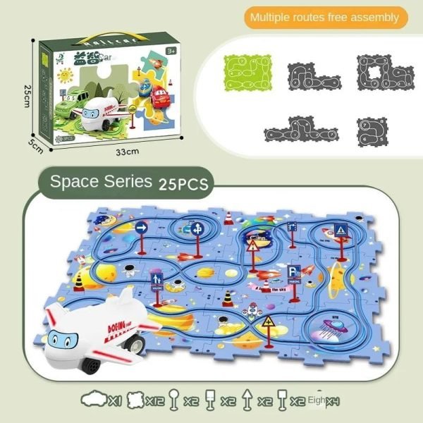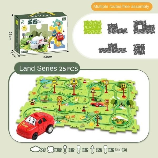 25pcs Track Electric Toy Car Set Children’s Puzzle Map Assembled Toys Simulation Forest Ocean Road Birthday Gift For Kids
