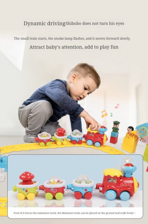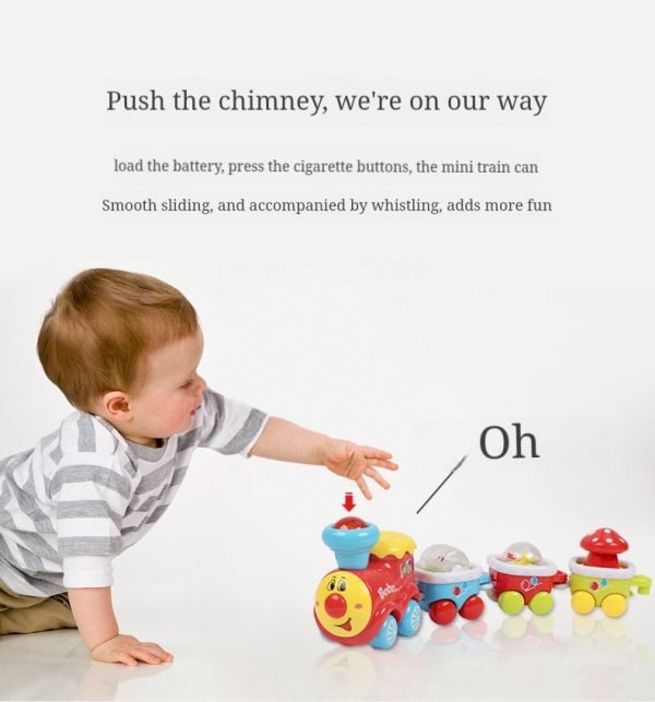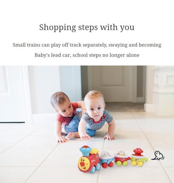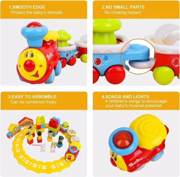 Cute and fun: A cute train surface to attract baby’s attention, just press the locomotive, the cute train will work together with joyful music and colorful lights to attract baby’s attention Pay attention and guide your baby to crawl.