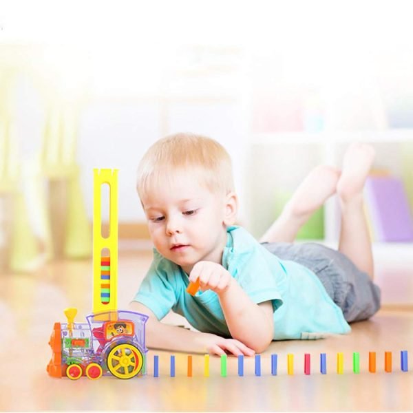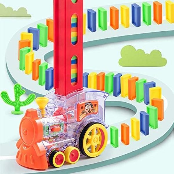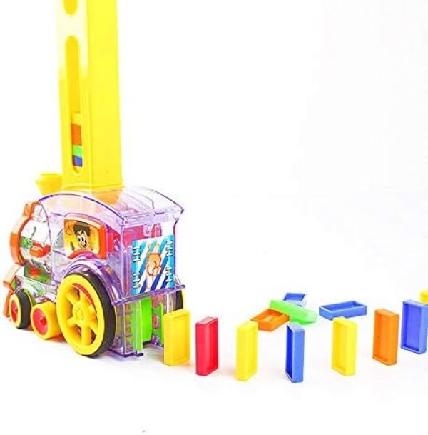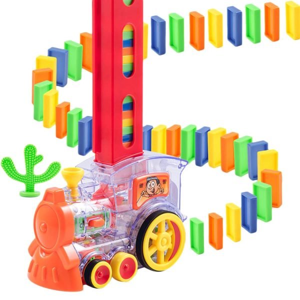 - DOMINOES TOY TRAIN SET: It consists blocks and a train, and comes with a beautiful box. Children will use blocks and small trains to play their imagination and creativity, independently complete different domino routes, and then push them. It needs us