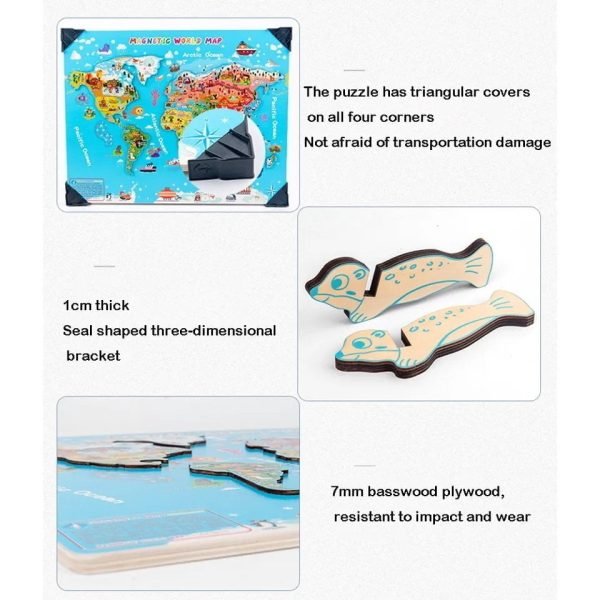 English Magnetic World Map Children Early Education Geography Cognition Boys Girls Primary School Students Wooden Puzzle Toys