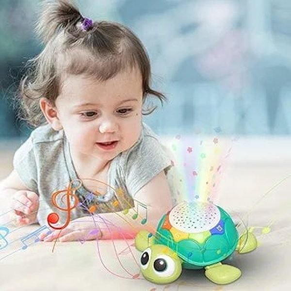 Light up Turtle – Light Up Cute Colorful with Projector Crawling Toy Turtle Toys,Musical Funny Newborn Supplies Crawl Toy for 6 Months to 2 Years Old Kids Blemo