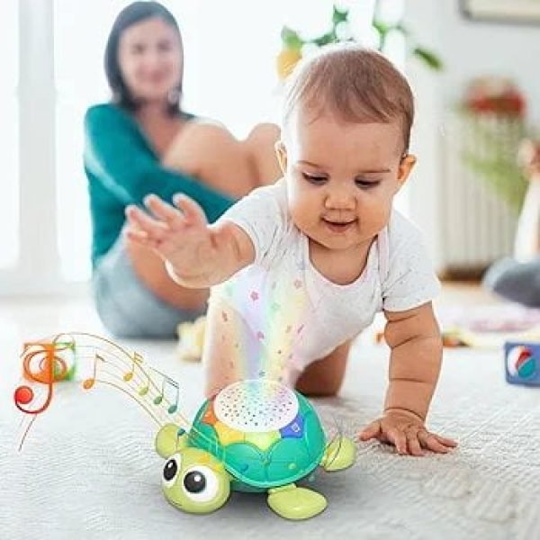 ☉Movement Inspiration: Stimulate your little 1’s movements with our fun and engaging musical turtle crawling toy. Press the crawl mode button and watch as this cute toy crawls, while playing cheerful music and flashing colorful lights, encouraging your child to crawl or sit up and have a blast.