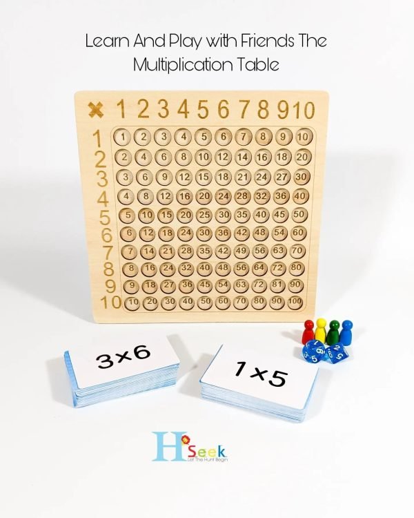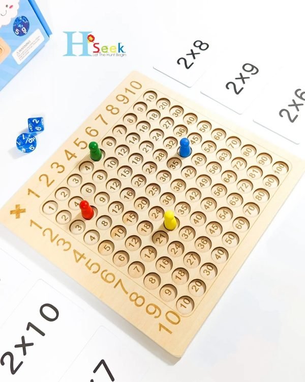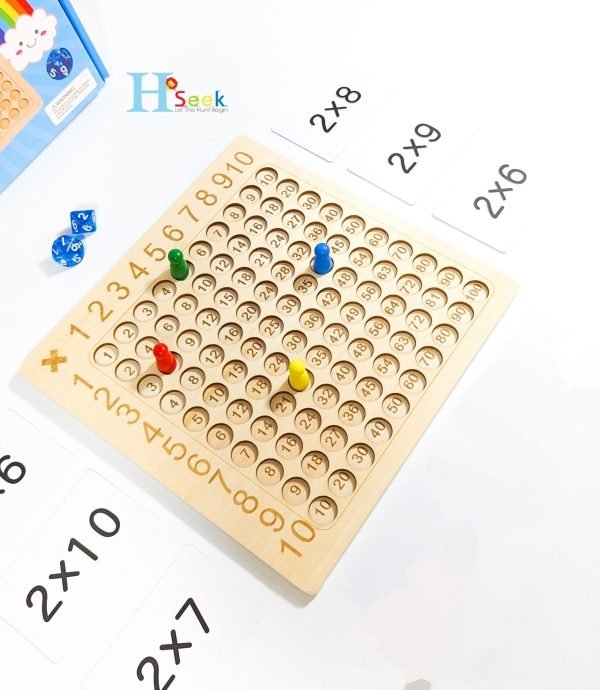 - High-quality Materials 1 x 1 Learn Games:This Montessori Multiplication Board is made of natural wood, not easy to damage and durable. Fine workmanship and smooth surfaces without edges, children can play safely. Contents: 1 board, 2 cubes, 2 pieces, 100 cards.