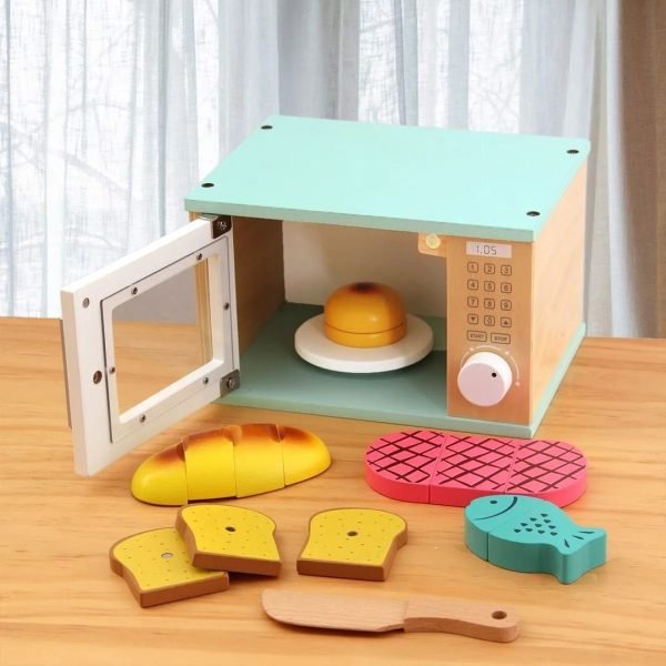 Montessori oven microwave for Kids Ages 4-8 Stem Mini Playset Oven Kitchen ToysKitchen Wooden Set Utensils Children for Toddlers Age 2-4