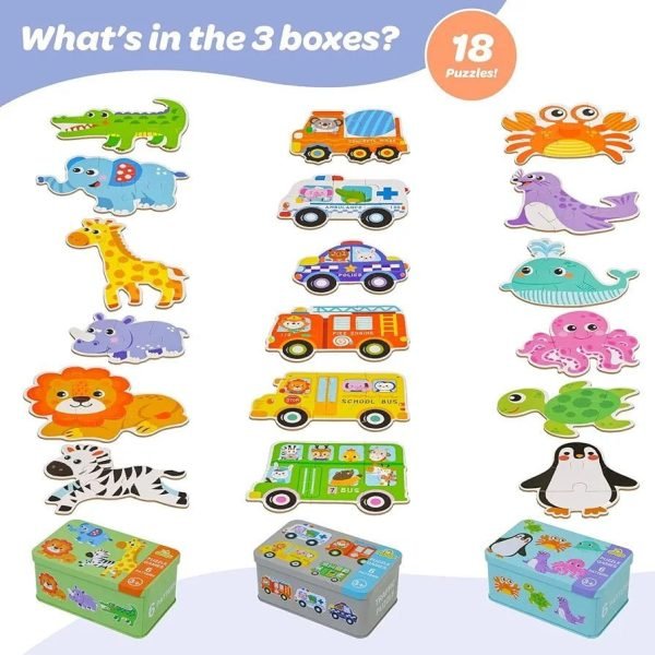 🌟 3 Fun & Colorful Themes – Bundle includes 3 iron boxes featuring marine animals, wild animals, and traffic/cars themes for endless entertainment and learning opportunities.