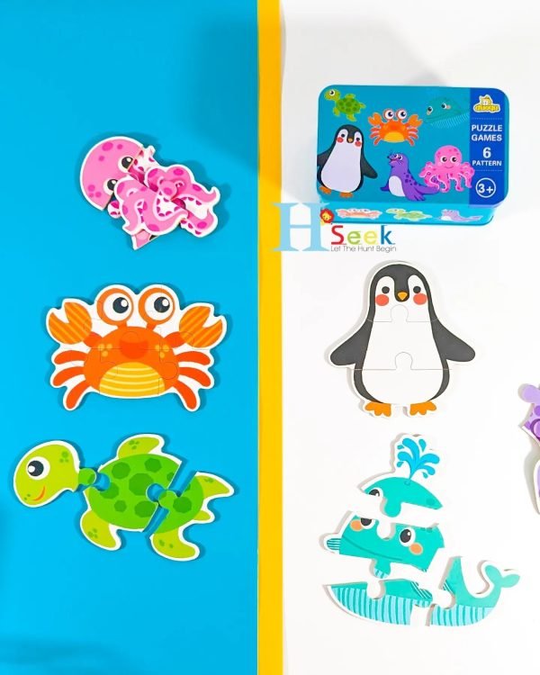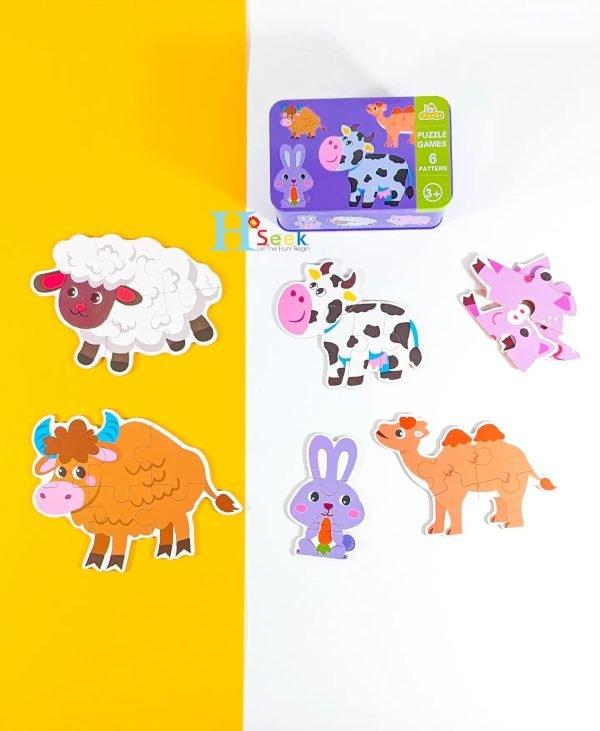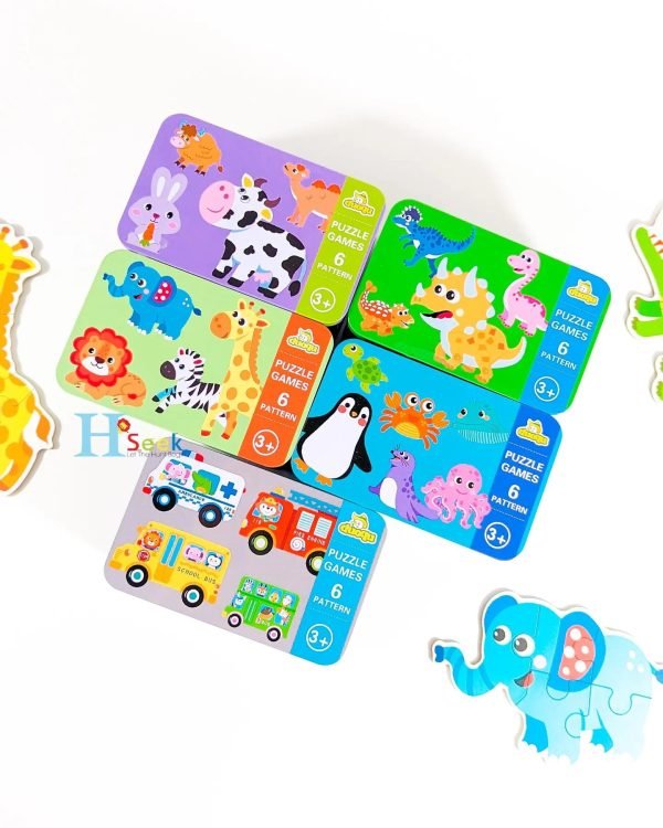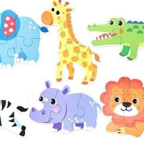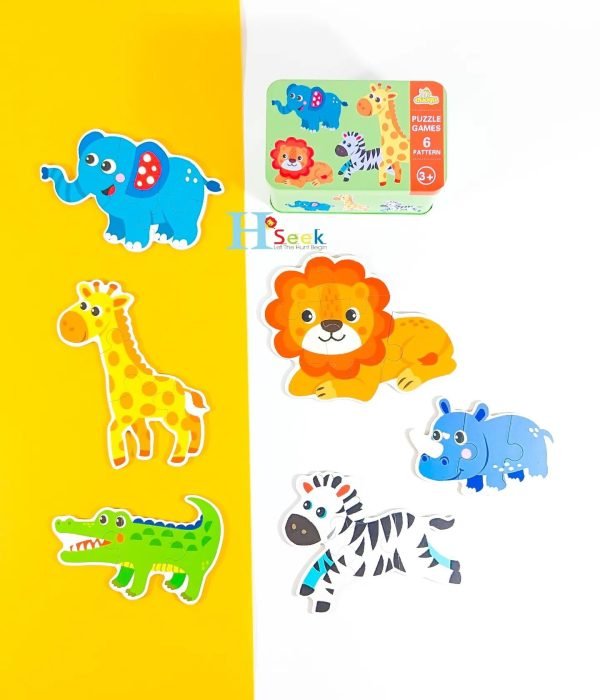 - The theme of the puzzle is six different wild animals, including the elephant, giraffe, zebra, rhino, lion and crocodile. This theme is very interesting for children, especially those who are fascinated by animals and nature.
