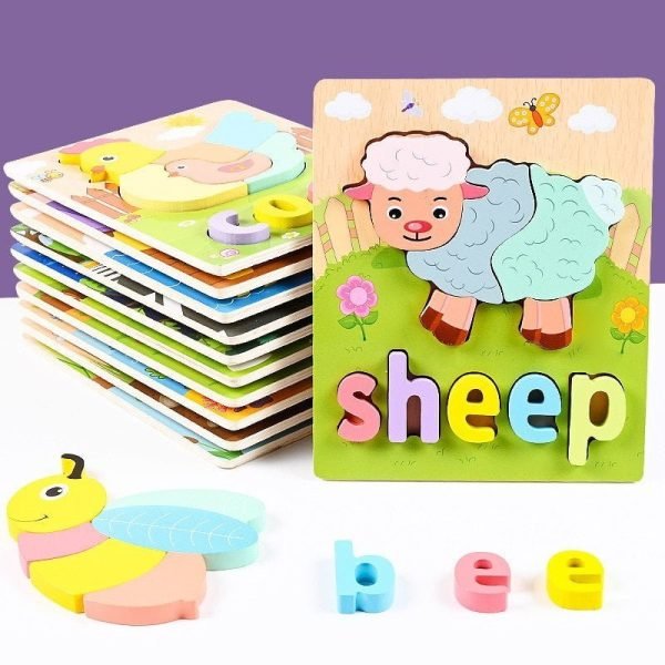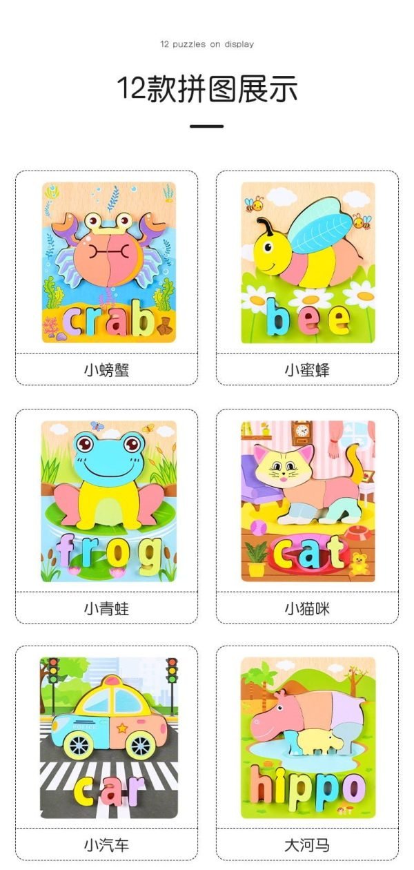 Montessori Wooden Puzzles Toys for Kids Ages 2-4 Babies Cognitive Alphanumeric Animal Board Games Educational Toys for Children