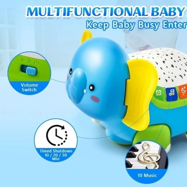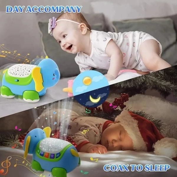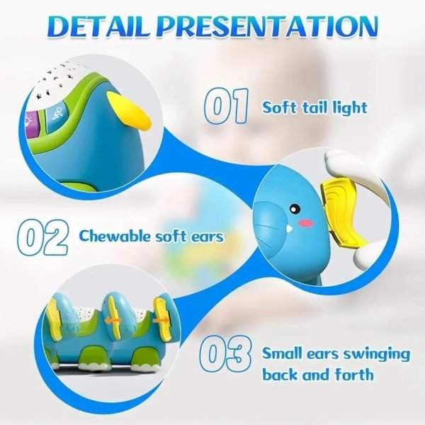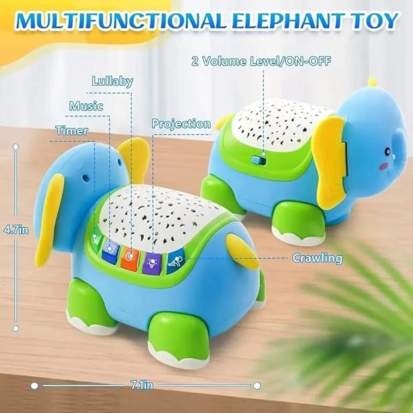 【Projection function& soothing music】 The Crawling Elephant Toy comes to life with a stunning display of colorful star and moon lights that project onto the walls and ceiling, creating a magical and immersive environment for your little one to explore.Has 10 gentle music and 5 nature sounds for you to choose from, to create the perfect ambiance for kids bedtime.