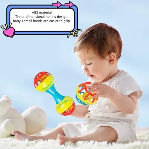 Rattle The Bell Crinkle Baby Toy Infant Teethers Teeth Grinding Teethers Chew Toys for Kids Infant Developmental Toys Musical Toys Teethers for Baby Rattle Shaker Toys Toddler (2pcs)
