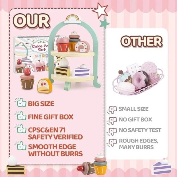 Be the first to review “Wooden Cake Toys Tea Party Set Desserts Food Toy with Cupcake Stand, Kids Pretend Play Kitchen…3+ kids” Cancel reply